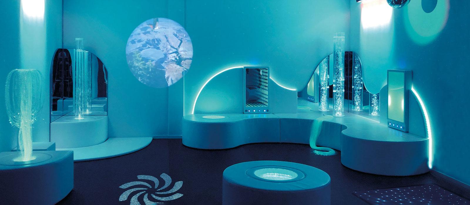 - A Sensory Room is a room where sounds or lighting can be controlled and where soothing music is played. A good Sensory Room is a space that takes away restlessness and where the attention is focused on pleasant sitting or lying down, without disturbing elements from outside. Moreover, it is important to create safe corners where people can relax and from where they can have a good overview of everything in the room. Sensory Rooms offer plenty of space and freedom to offer the right form of stimuli, depending on the need. However, in case of overstimulation, the relaxing, soothing and safe aspect of Snoezelen is especially important.