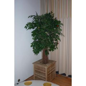 Decorative, art ficus tree that contains different types of birds. When they walk along the tree these birds begin to whistle. The bird tree is built into a wooden box for a freestanding setup.