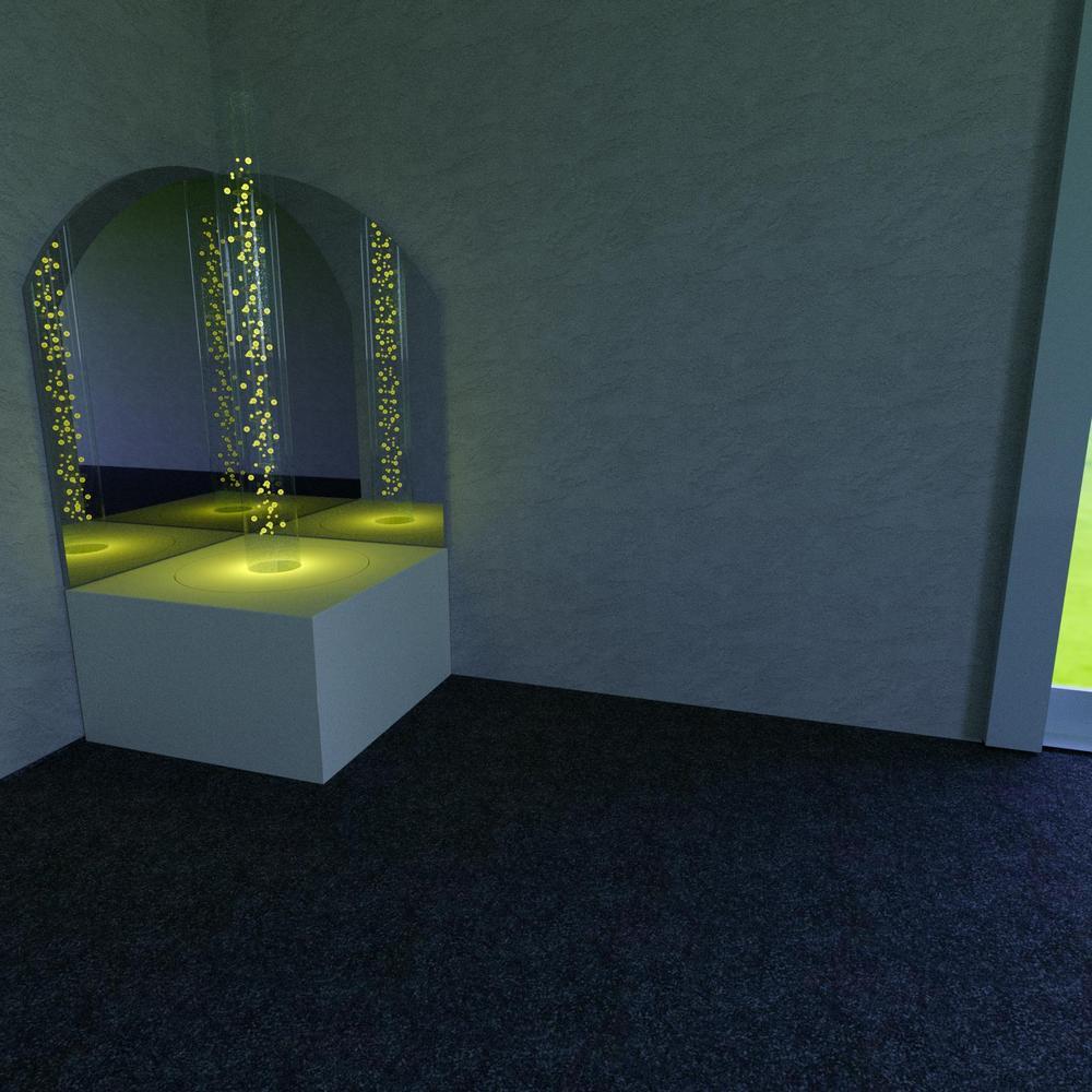 This set is a corner arrangement. By placing the mirrors in an 90 degrees angle, the effect of the bubble tube is stronger and you see it four times! This set consists of: Coated square platform with 2 rounded mirrors and Nenko bubble tube. The second colour comes on the sides.