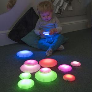 Discover the magic of the rechargeable illuminated pebbles, an enchanting experience for children, but also for children with special needs. This set of 12 colored pebbles is designed to provide a soothing and stimulating sensory experience.