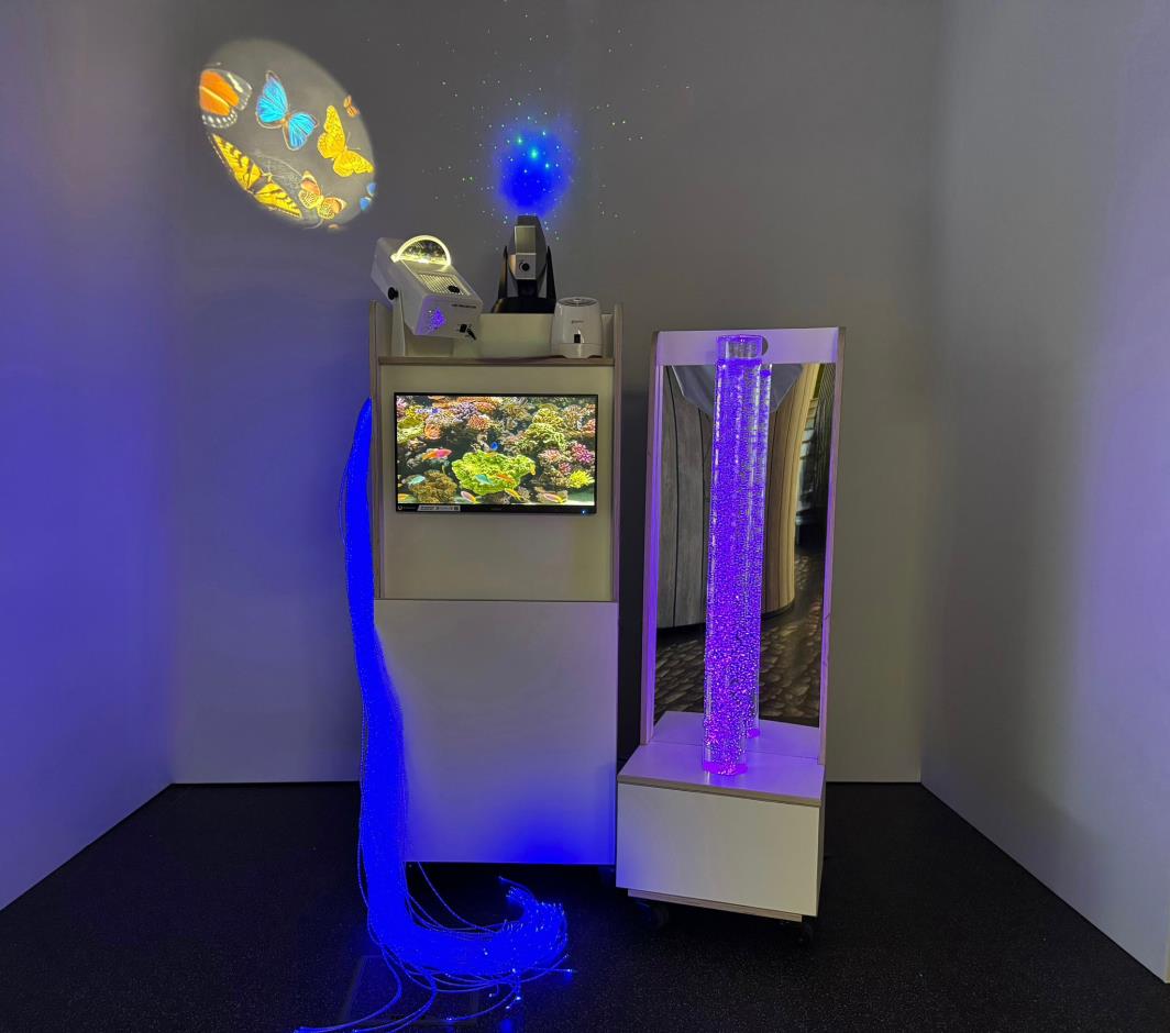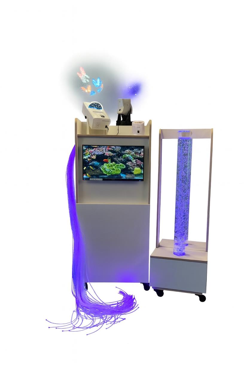 This sensory trolley is now available in white and is ideal for use with bedridden individuals or people in wheelchairs, thanks to the screen positioned at a suitable height.