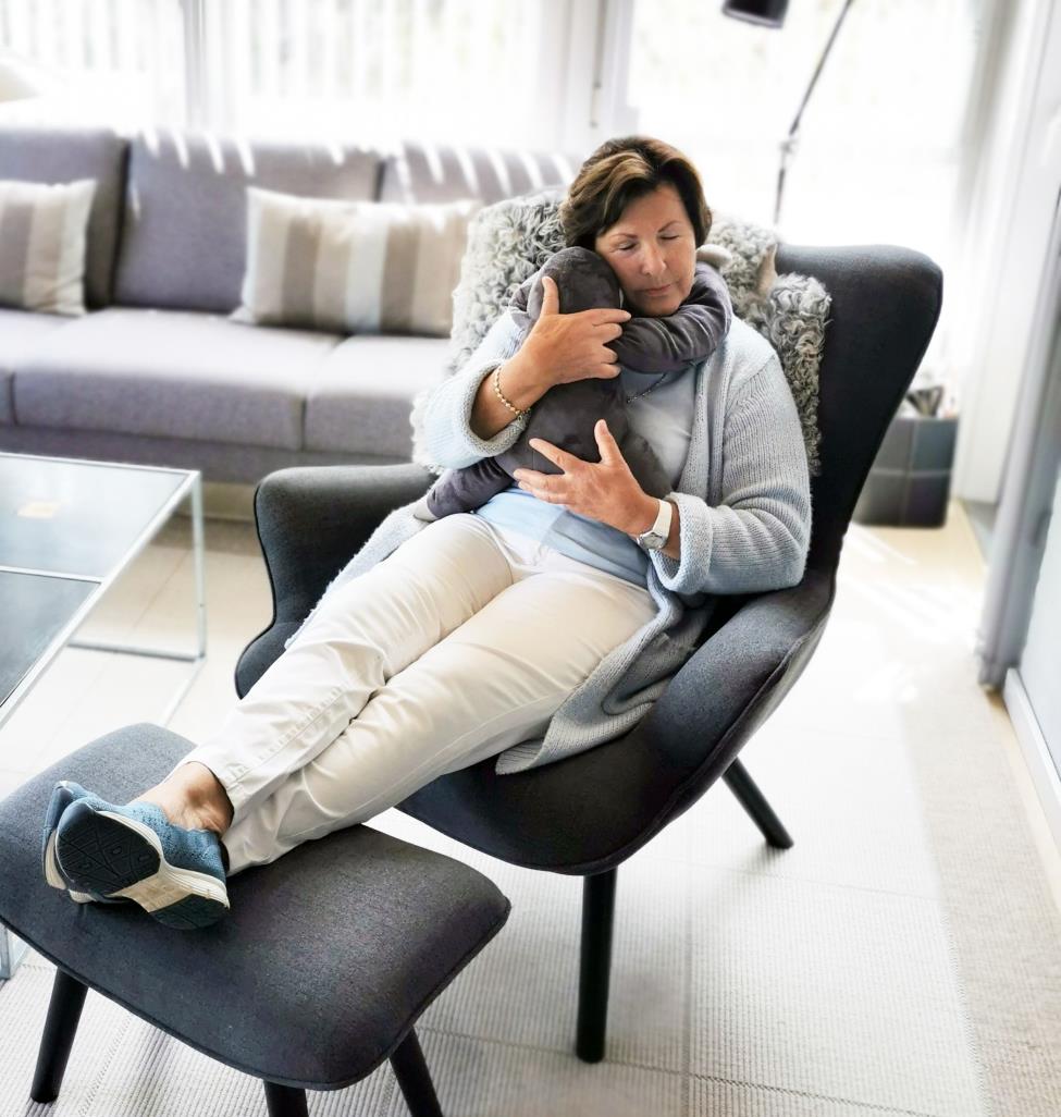 Bent is a weighted cuddly animal, which, due to its weight in combination with its long and weighted cuddly arms, creates relief, peace and security in people with stimulus processing problems, tension and sleeping problems. Children, adults and elderly people with dementia can benefit from the use ...
