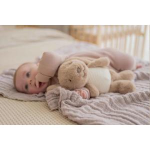 The Milo heartbeat comforter helps with relaxation, better sleep and reducing restlessness. This soft cuddly toy with a removable music box plays five soothing sounds such as heartbeat, white noise, breathing, rain or a lullaby. The familiar sound and soft material provide a sense of safety and comf...