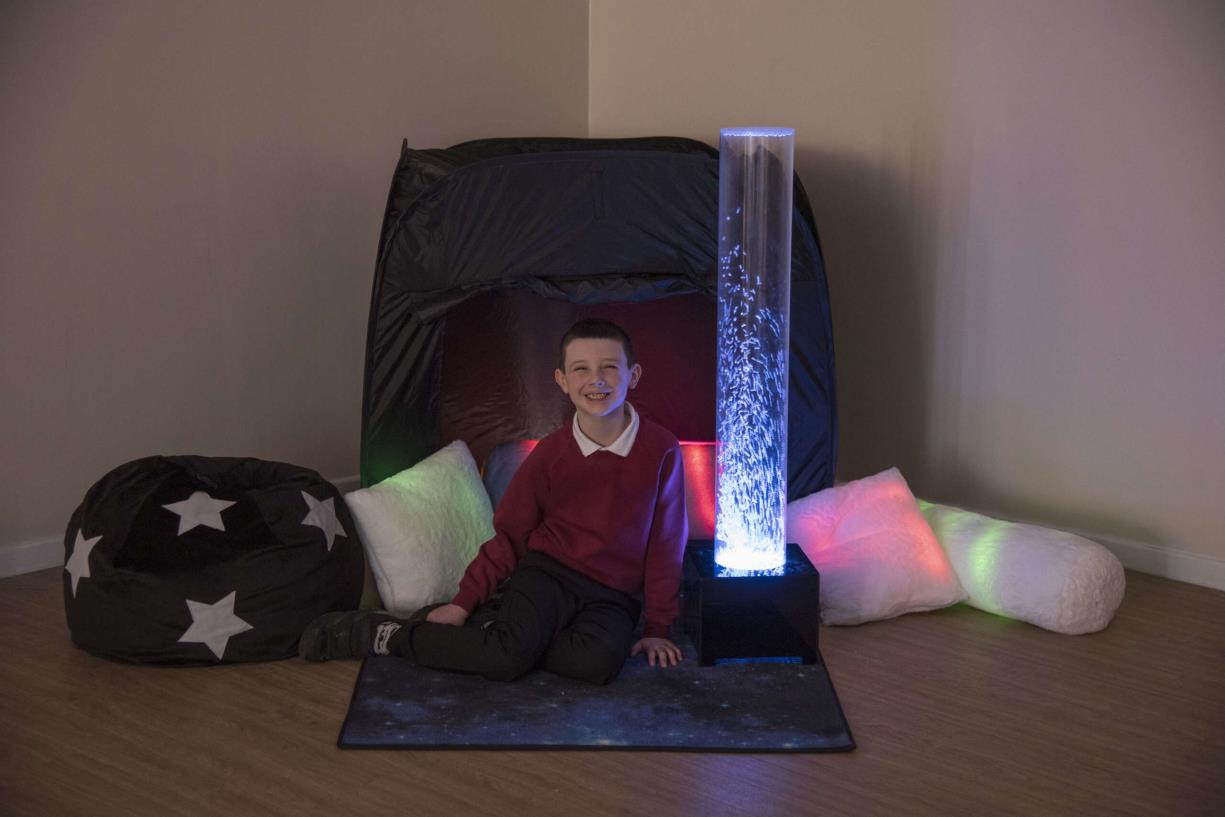 This sensory tent is designed as a safe space for children who become easily overwhelmed by sensory input. It provides a calming environment for relaxation and sensory exploration.