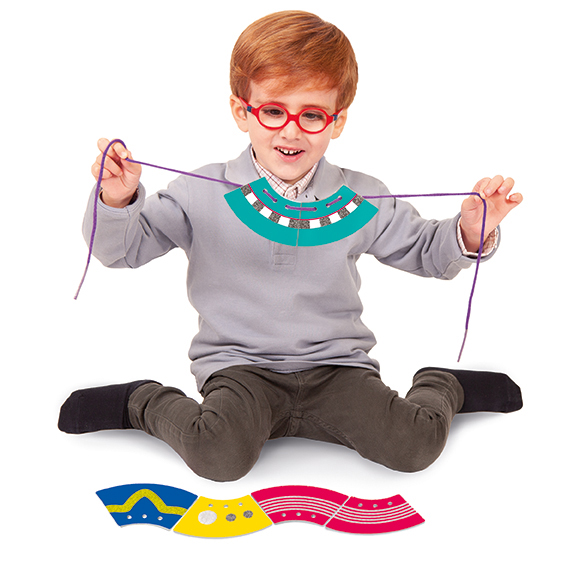 Discover a creative and educational game that helps you create fun routes by lacing cards of different colors and textures. This game is not only entertaining, but it also helps improve your visual and tactile skills, as well as your fine psychomotor skills.