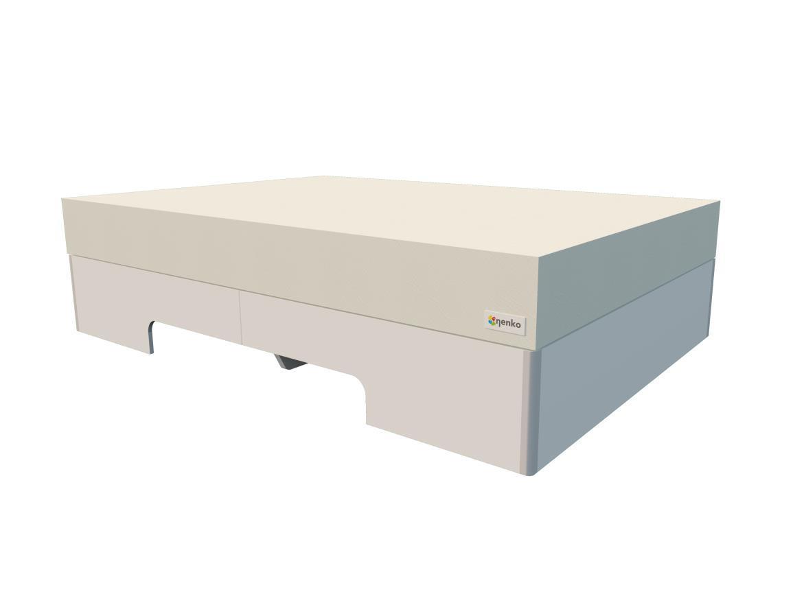 A lift recess is standard in our shelves. When the waterbed is placed against a wall, you can easily turn the platform, so that the lift recess is against the wall and the closed side at the front.