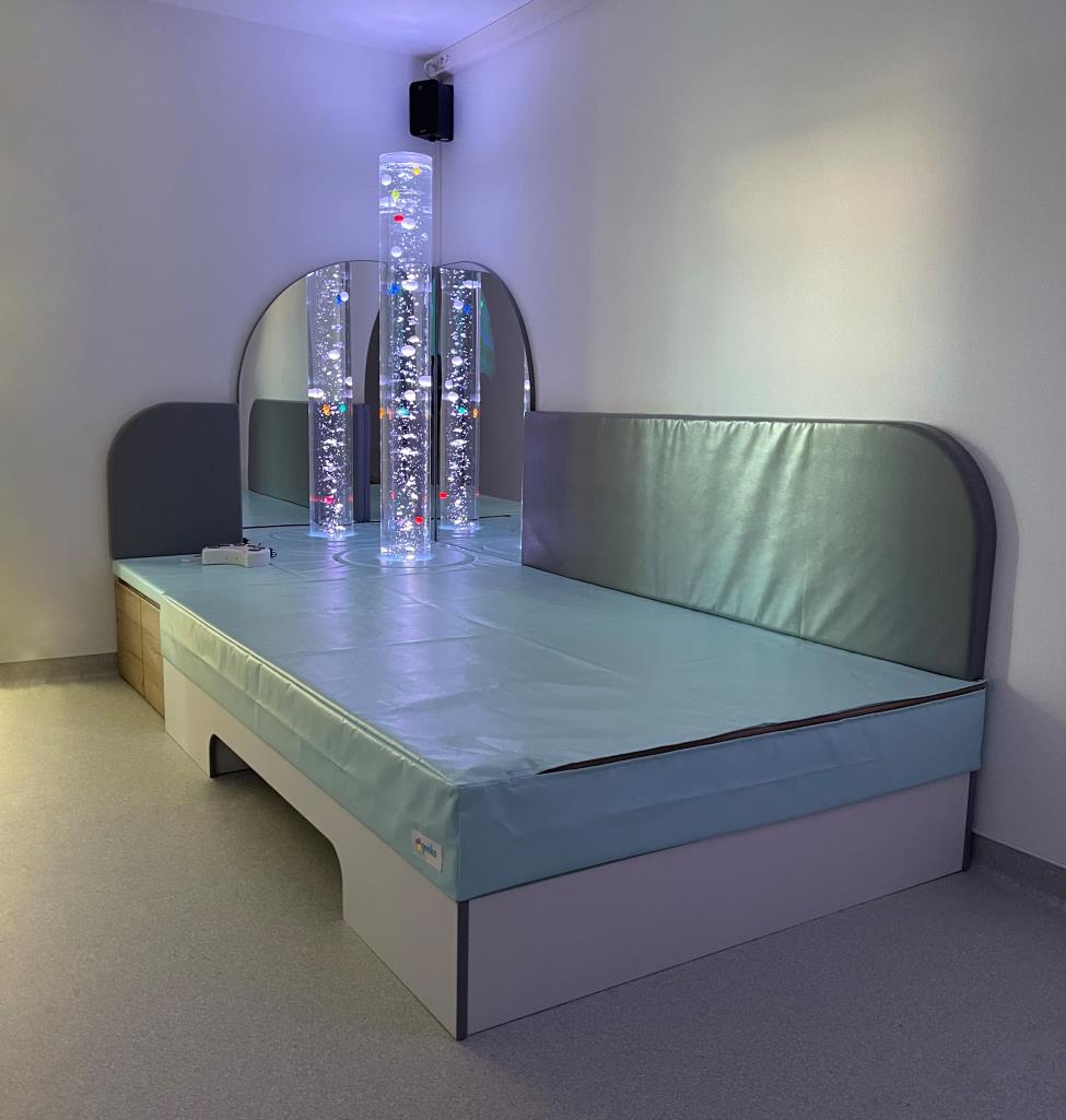 With a musical waterbed, the bass of the music can be felt through the water. This allows you to enjoy the music tactile, which is very pleasant for, for example, deaf or hearing-impaired clients or people who are very tactile. The vibrations also give an extra secure feeling.