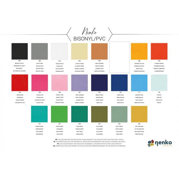 All bisonyl products can be cleaned with warm water and a mild soap (such as Andy or Ajax, etc.). Do not use aggressive cleaning products. Bisonyl cleaner is also available for more difficult stains.